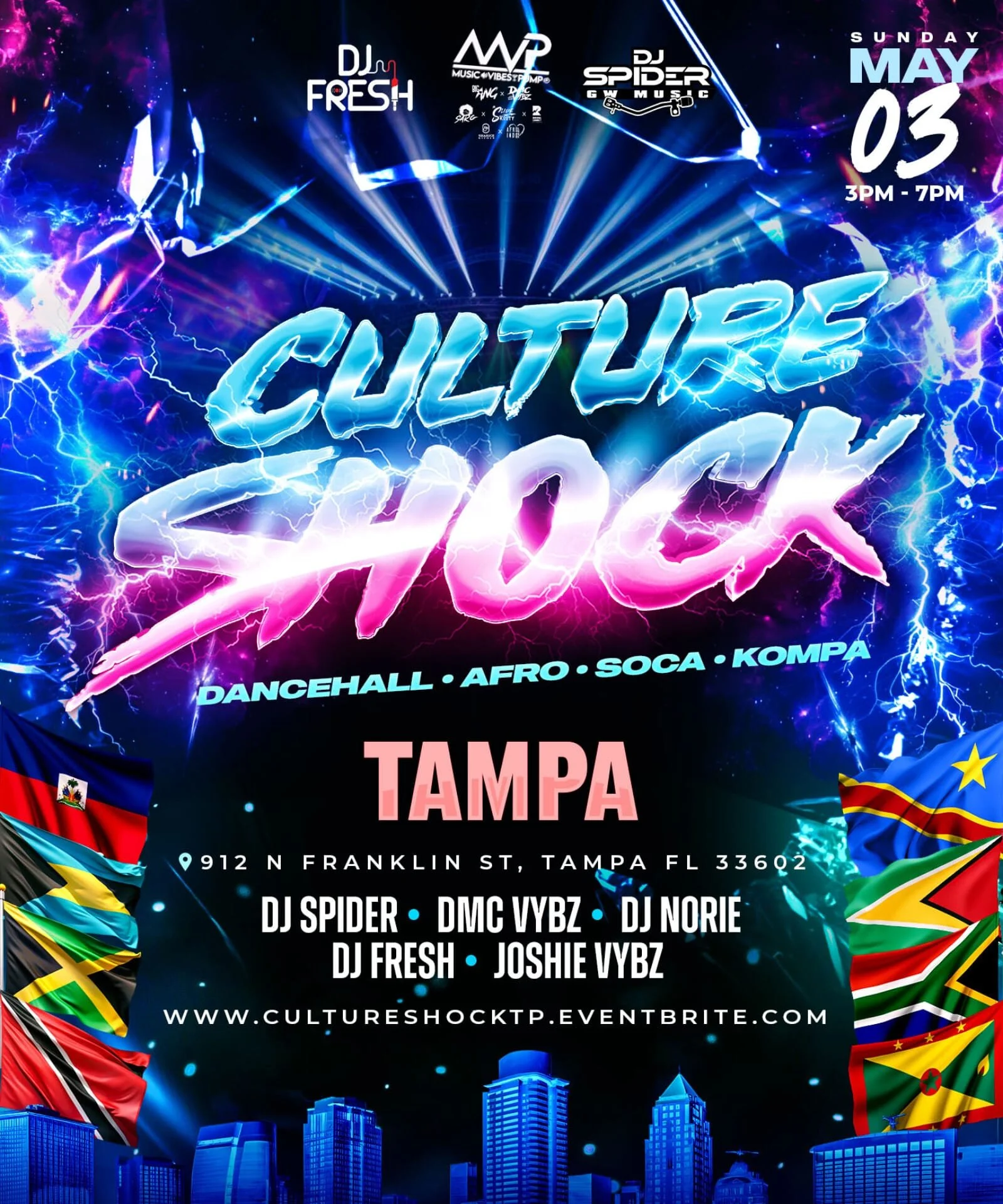 Culture Shock Tampa | Dancehall x Afrobeats x Soca x Kompa 5.03.26 Sunday, May 3, 2026 3:00 PM 7:00 PM 15:00 19:00 Echo Downtown 914 North Franklin Street Tampa, FL, 33602 United States (map) Google Calendar ICS CLICK LINK FOR MORE INFO: